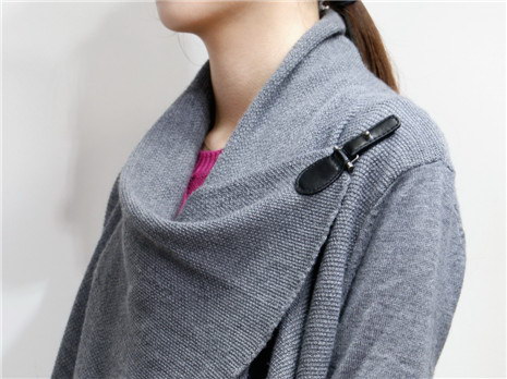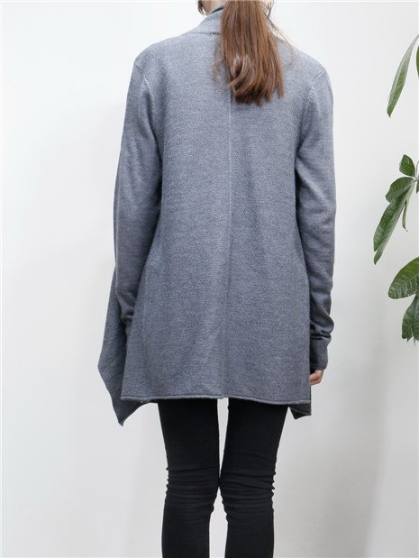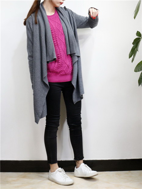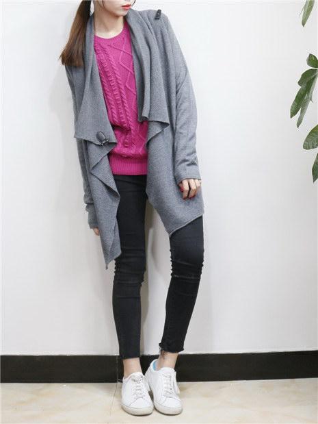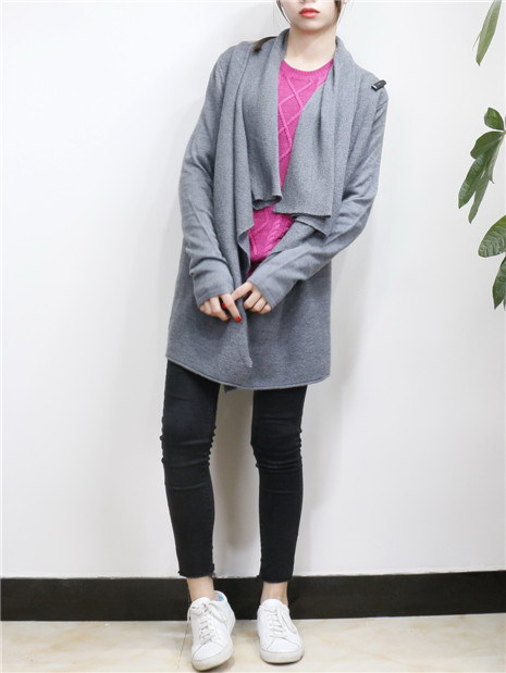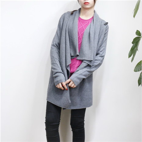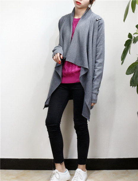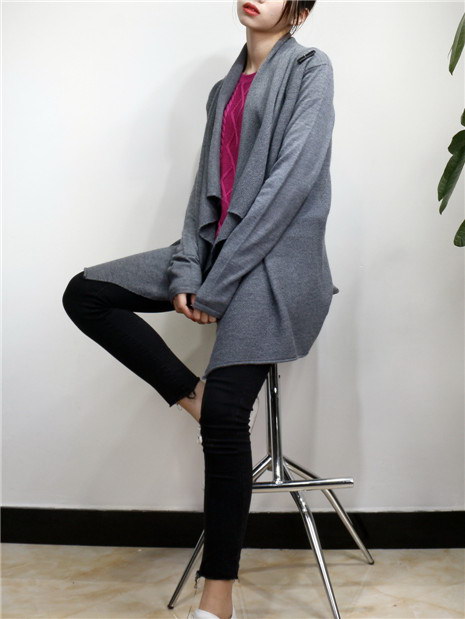 欧美风 中长款不规则领休闲针织毛衣外套